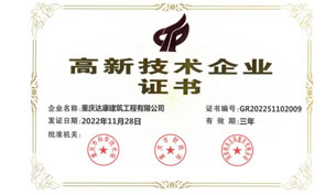 重慶達康建筑工程有限公司,于1993年8月注冊成立,公司注冊資金6128.71萬元,在職員工110余人,其中本科及以上學歷約40%-50%,擁有一、 二級注冊建造師數十人,擁有中級以上職稱數十人,各類從業資格證及上崗證書若干。公司擁有專業的技術施工人員和高效的管理團隊, 能充分滿足并獨立承擔與資質相匹配的工程施工需要;多次榮獲重慶市九龍坡區“守合同重信用單位”稱號,多次獲得“三峽杯”優(yōu)質結構獎和市級文明工地;合同履約率達到100%。